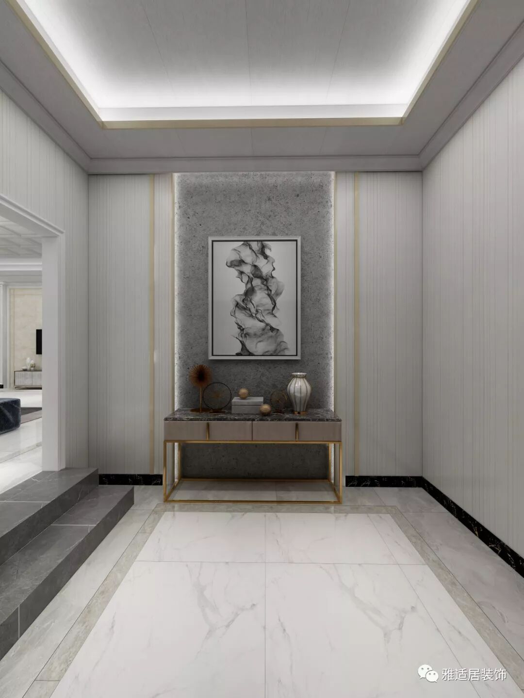 地面与墙面的一体化铺设,形成了一个温暖的且有安全感的空间,简单暖色灯光充满整个家,集成天花边沿雕花起到了画龙点睛的作用。